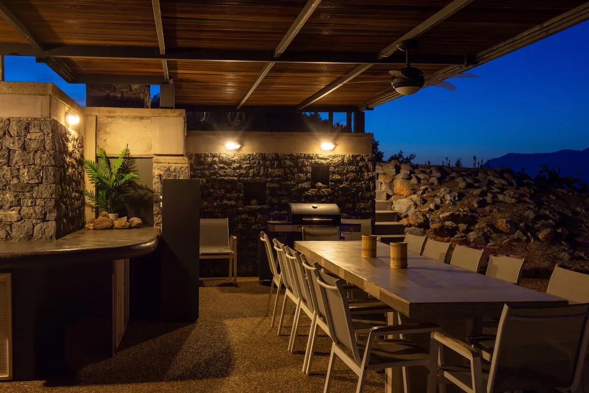 - BBQ Area: Seaside dining and a large outdoor barbecue setup, complete with a bathroom and dining area
