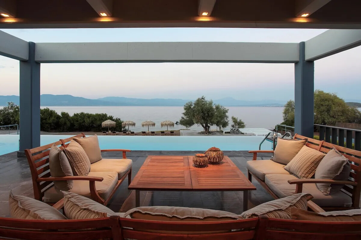 Villa’s ideal location near Athens allows residents to enjoy both the seclusion of Evia and the conveniences of the Greek capital. Anthedon’s historic ruins, Chalkida’s charming cityscape, and the natural splendor of Evia’s beaches provide a captivating environment for relaxation, exploration, and adventure.