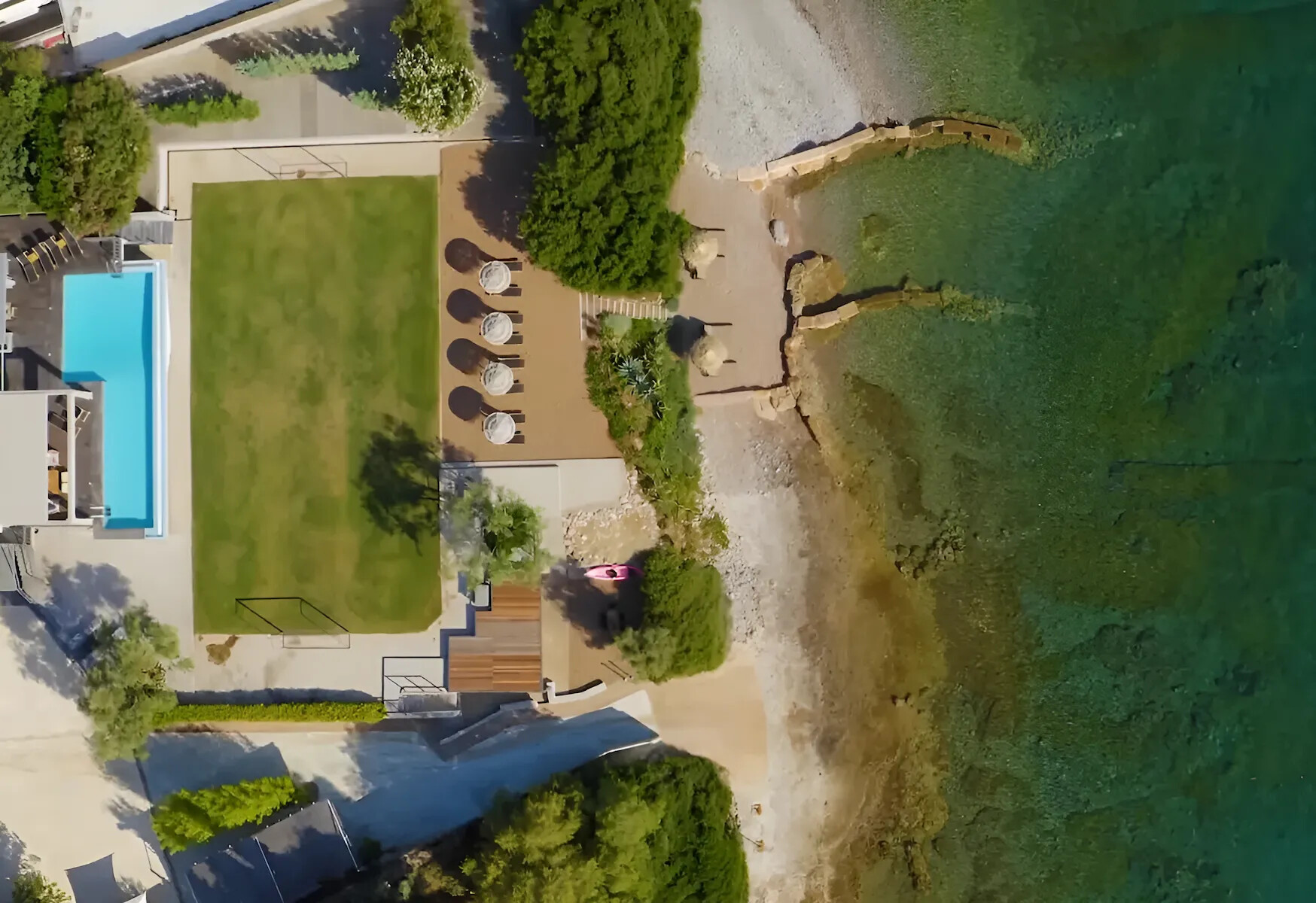 - Private Beach: Direct access to a private pebbled beach with secluded spots nearby