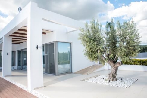 Seafront Villa Porto Heli Peloponnese exemplifies minimalistic elegance, with clean lines, floor-to-ceiling windows, and bright, open-plan interiors. White-washed walls and modern aesthetics blend perfectly with the lush Mediterranean landscape. Natural light floods every room, offering panoramic views of the coastline and surrounding greenery.