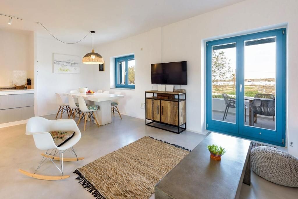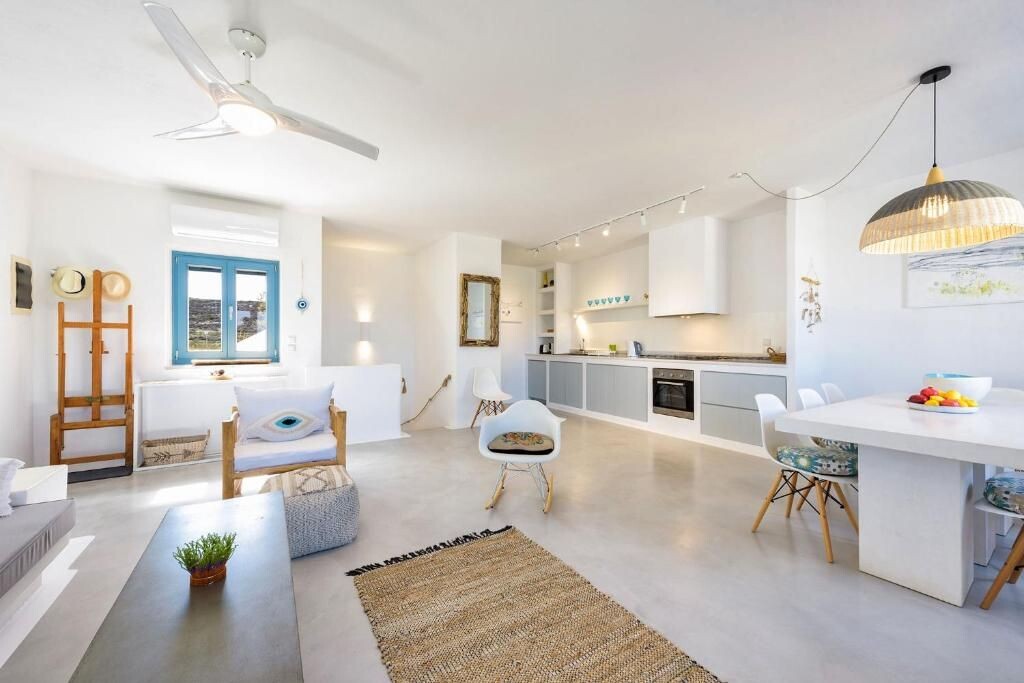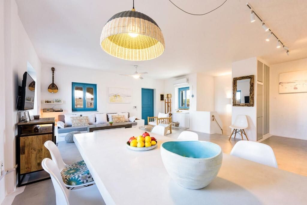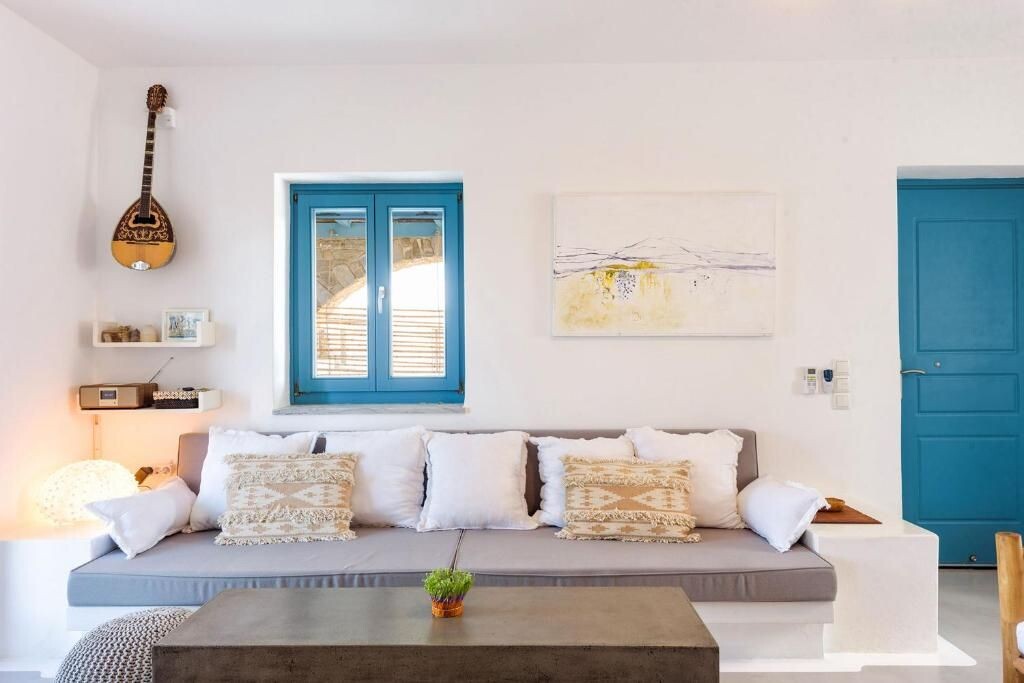 The property is located in Naoussa, Paros, Greece. The area is known for its beautiful beaches, charming villages, and vibrant atmosphere. The distances to nearby locations are: