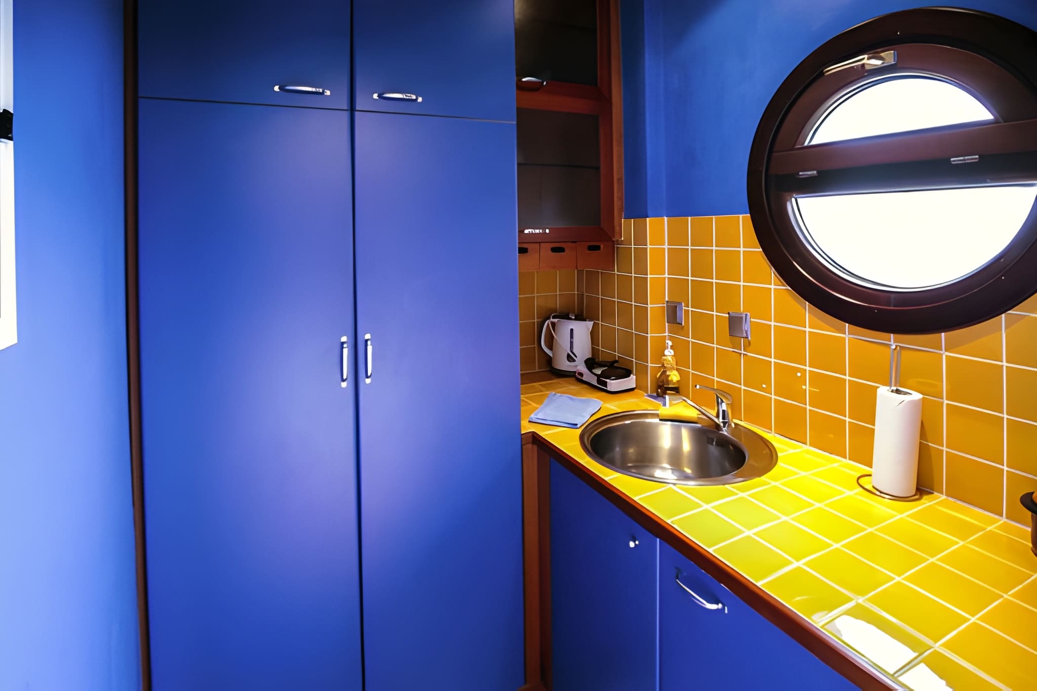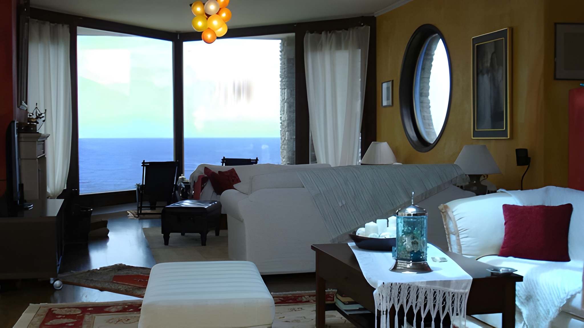 Each bedroom enjoys independent access, private bathroom facilities, and direct views toward the Aegean Sea.