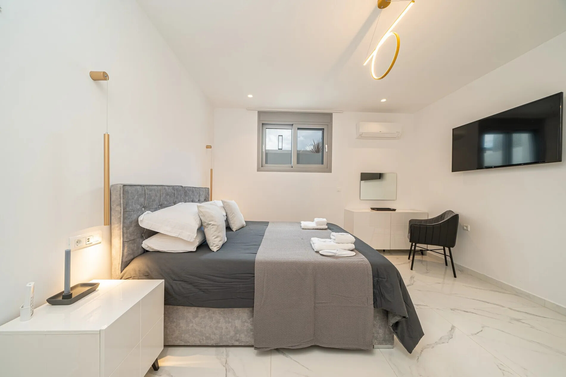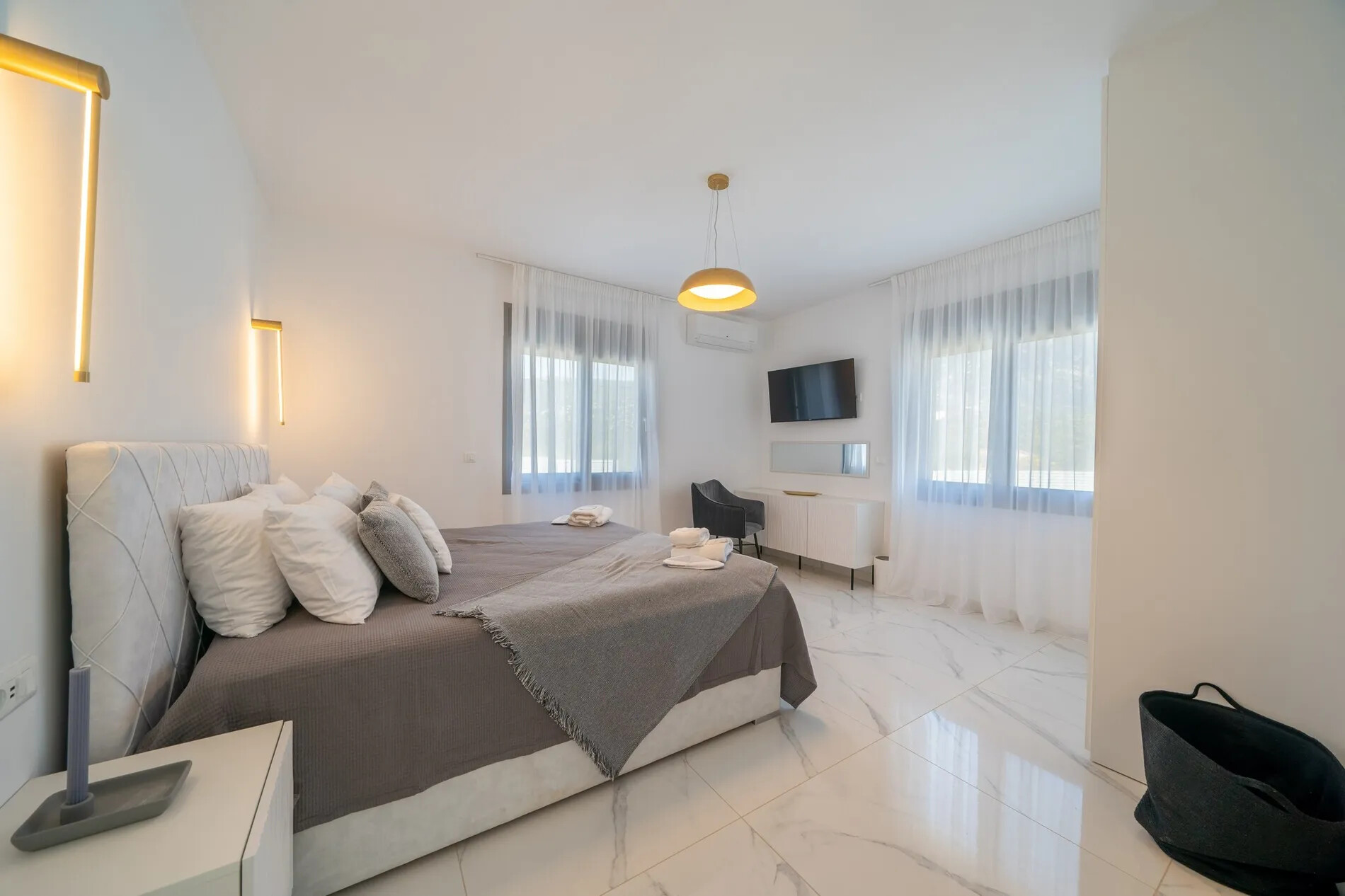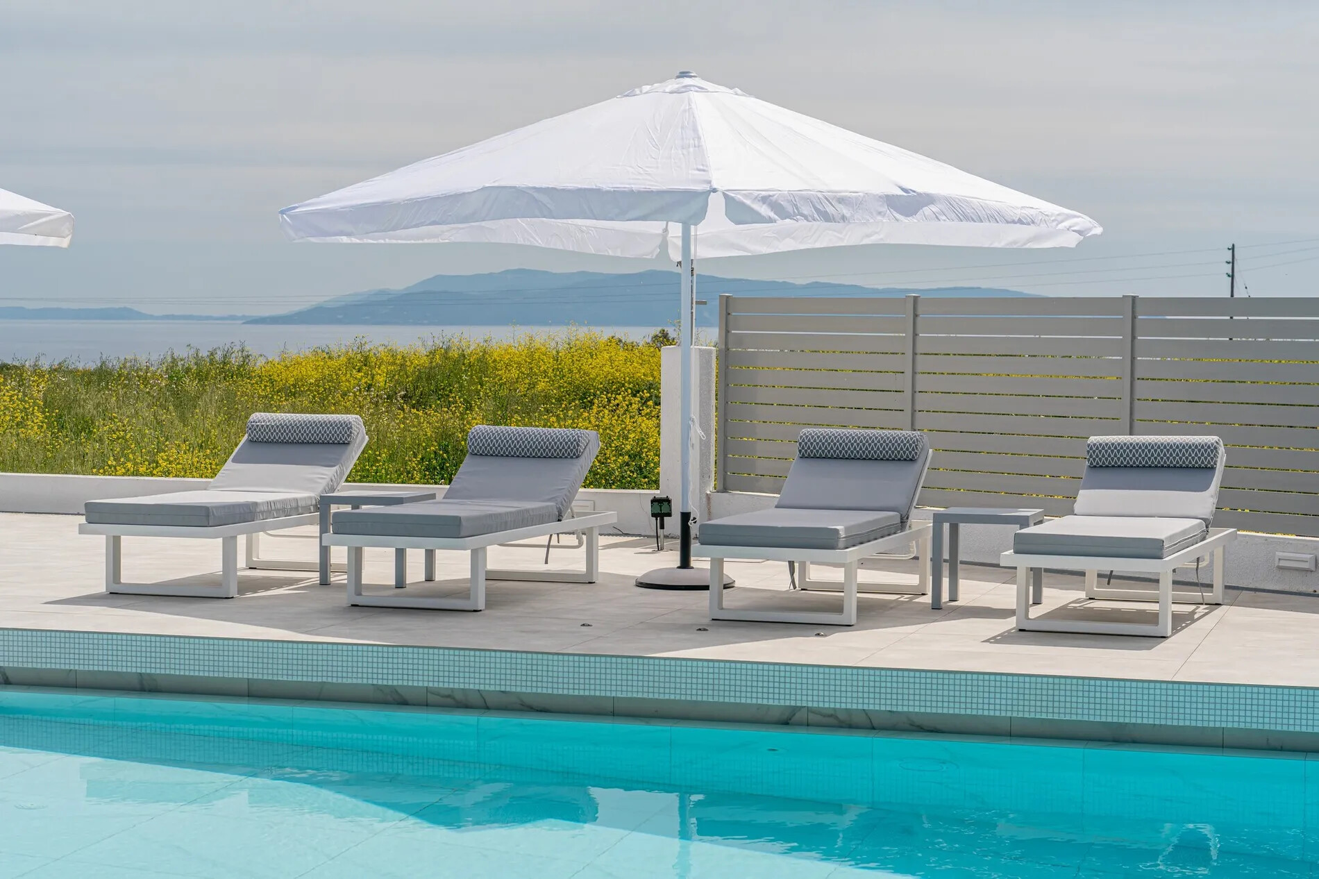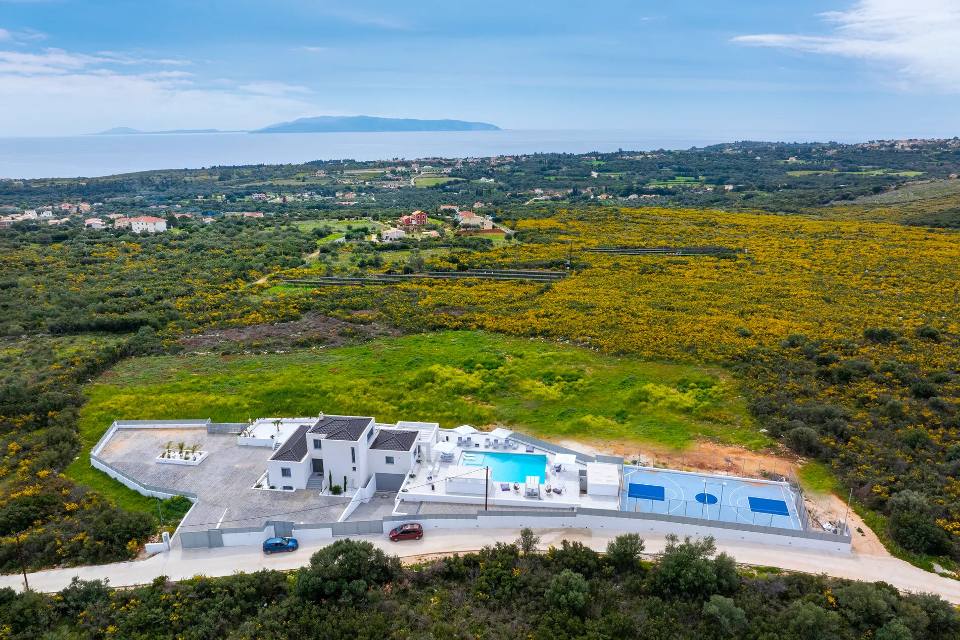 Combining minimalist design with refined luxury, the villa offers breathtaking views of the sea and the island of Zakynthos. With floor-to-ceiling windows, pristine white interiors, and seamless indoor-outdoor living, it is the ideal sanctuary for relaxation, entertaining, or year-round living.