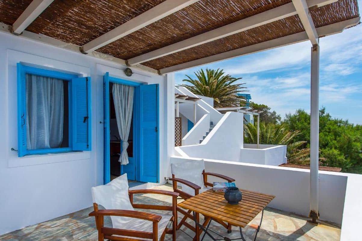 The four apartments and two studios provide six bedrooms, six bathrooms, four living rooms, and four small kitchenettes in total and all have their own private balconies with wooden pergolas for comfortable outdoor living under the shade.