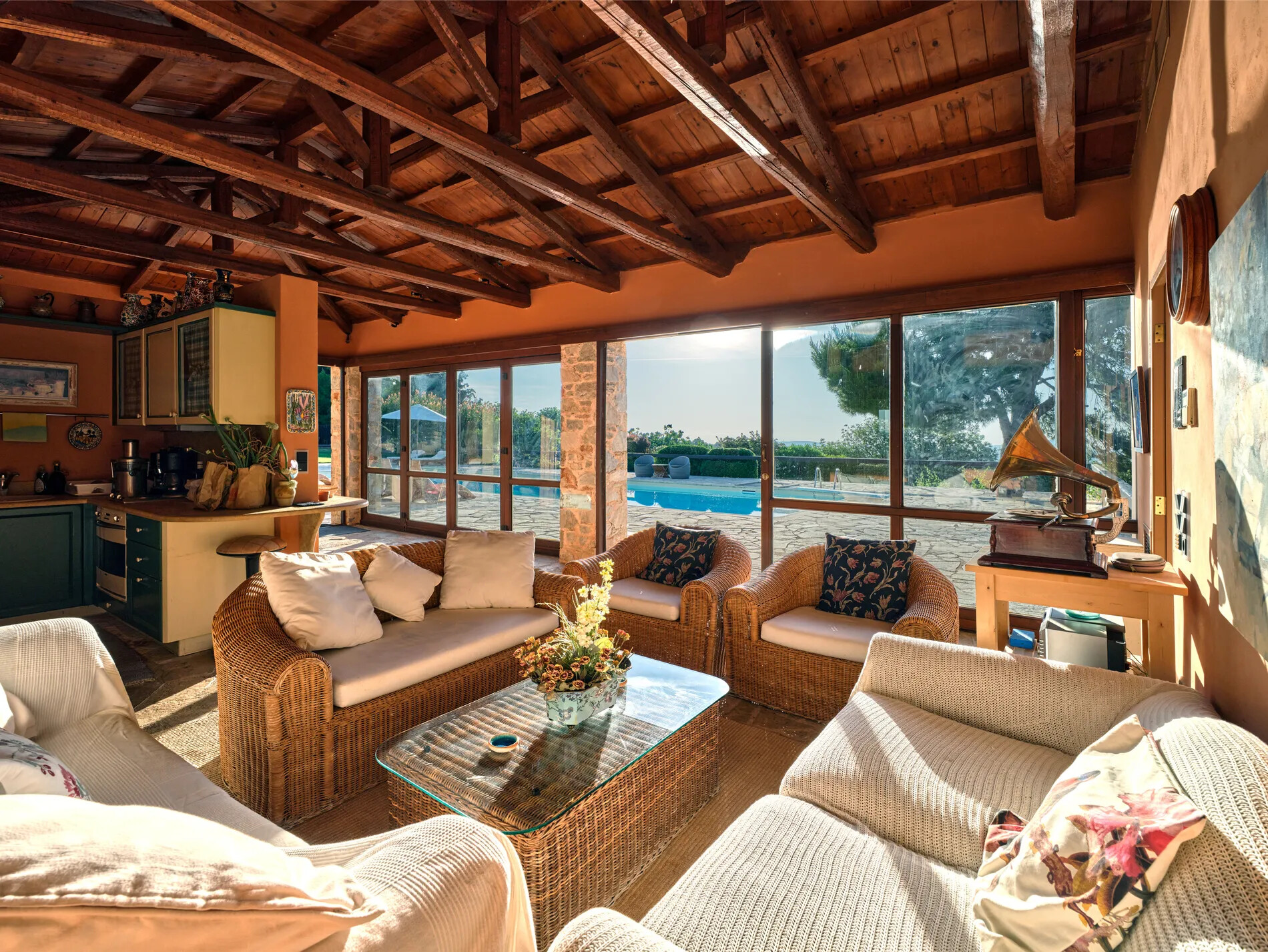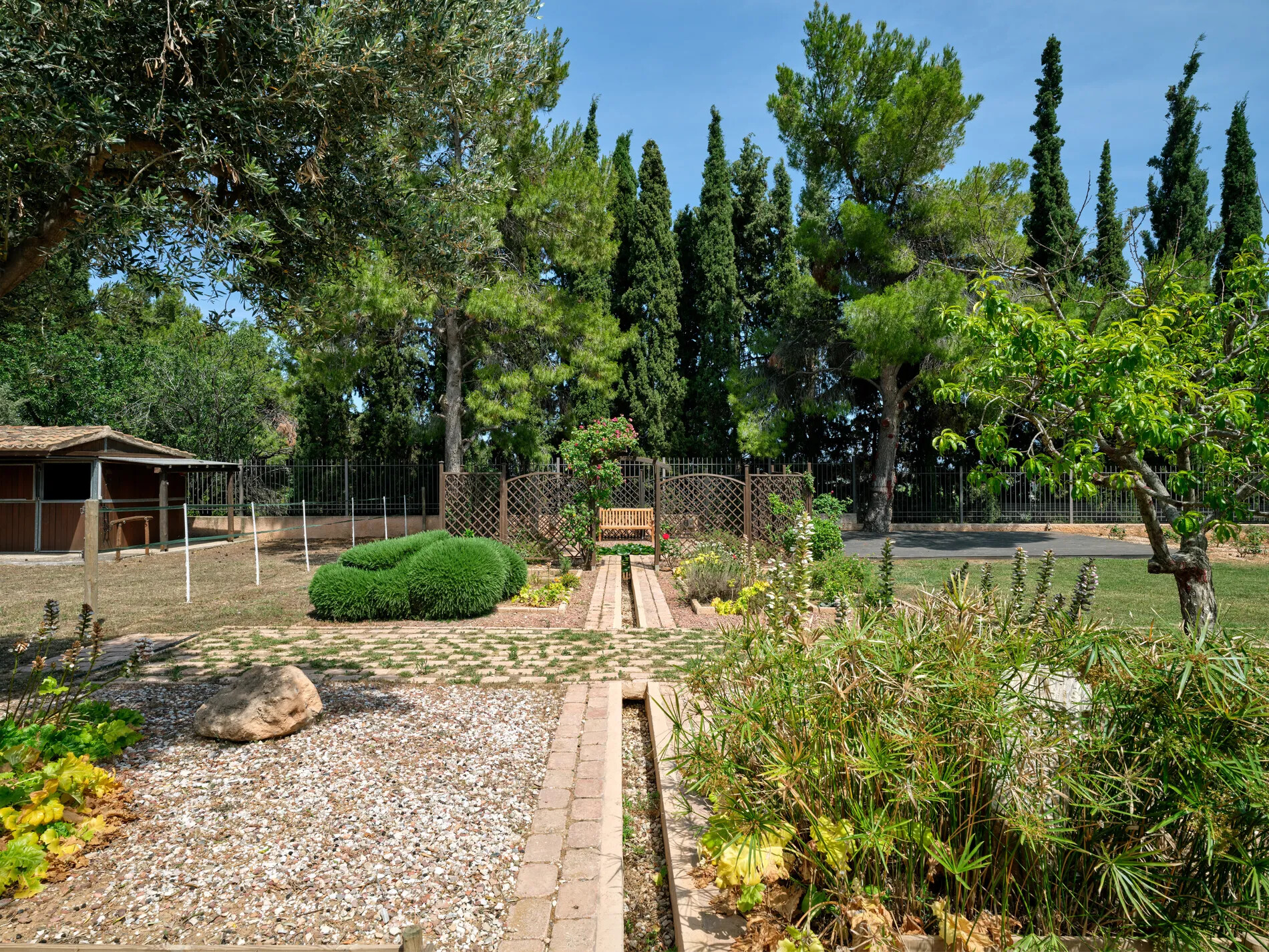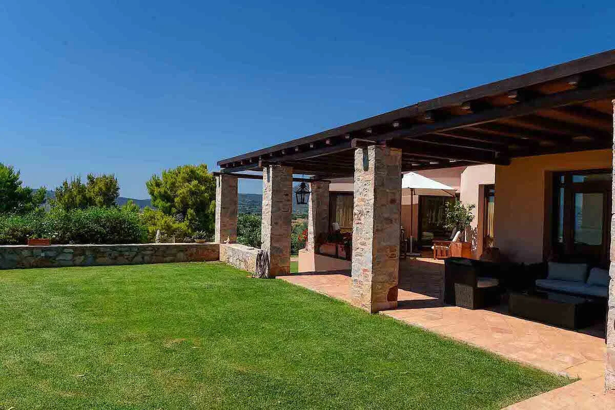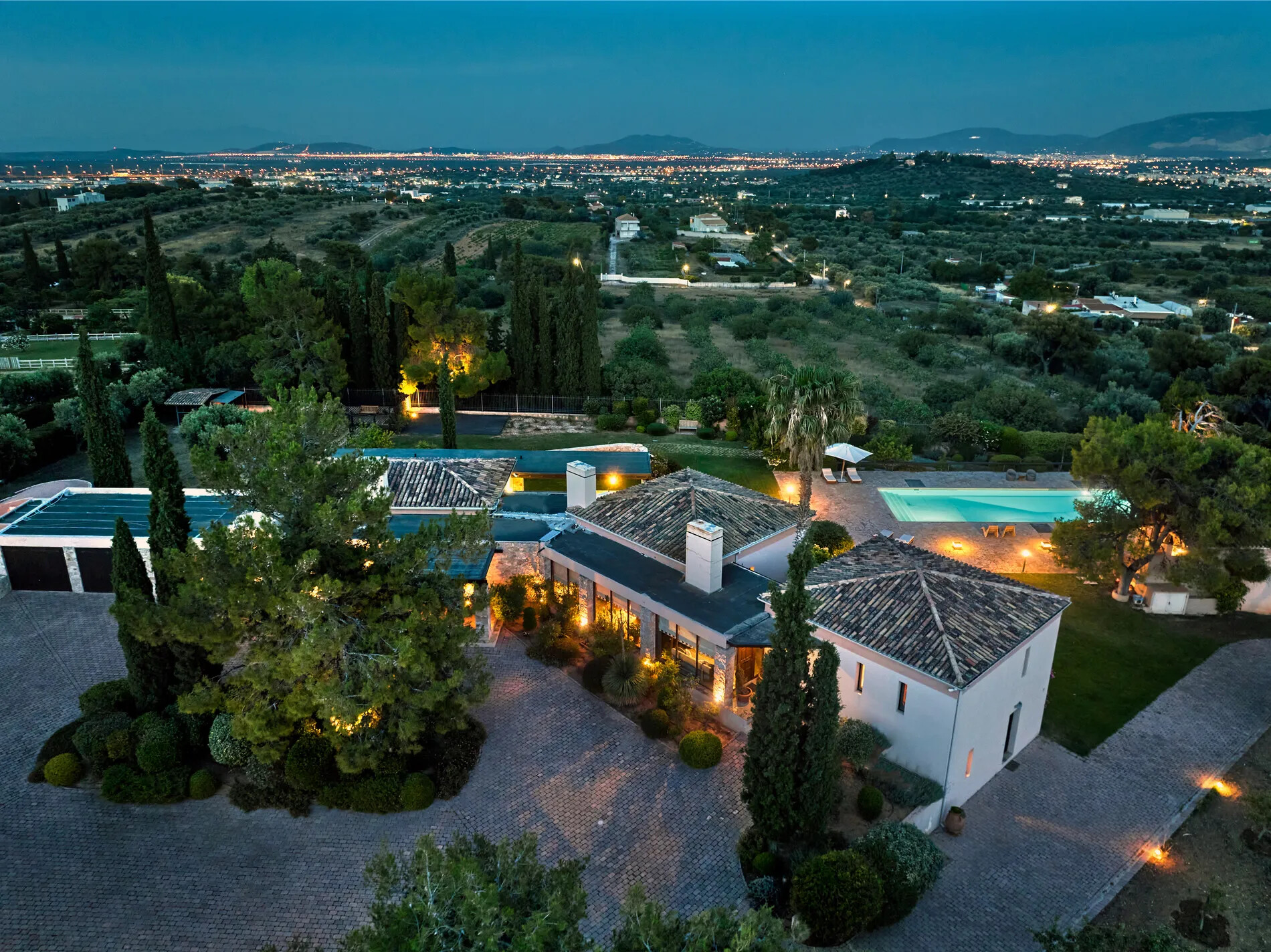 Spectacular villa in Athens caters to equestrian enthusiasts with a small barn and a picturesque riding field, providing an ideal setting for horse owners and riders.