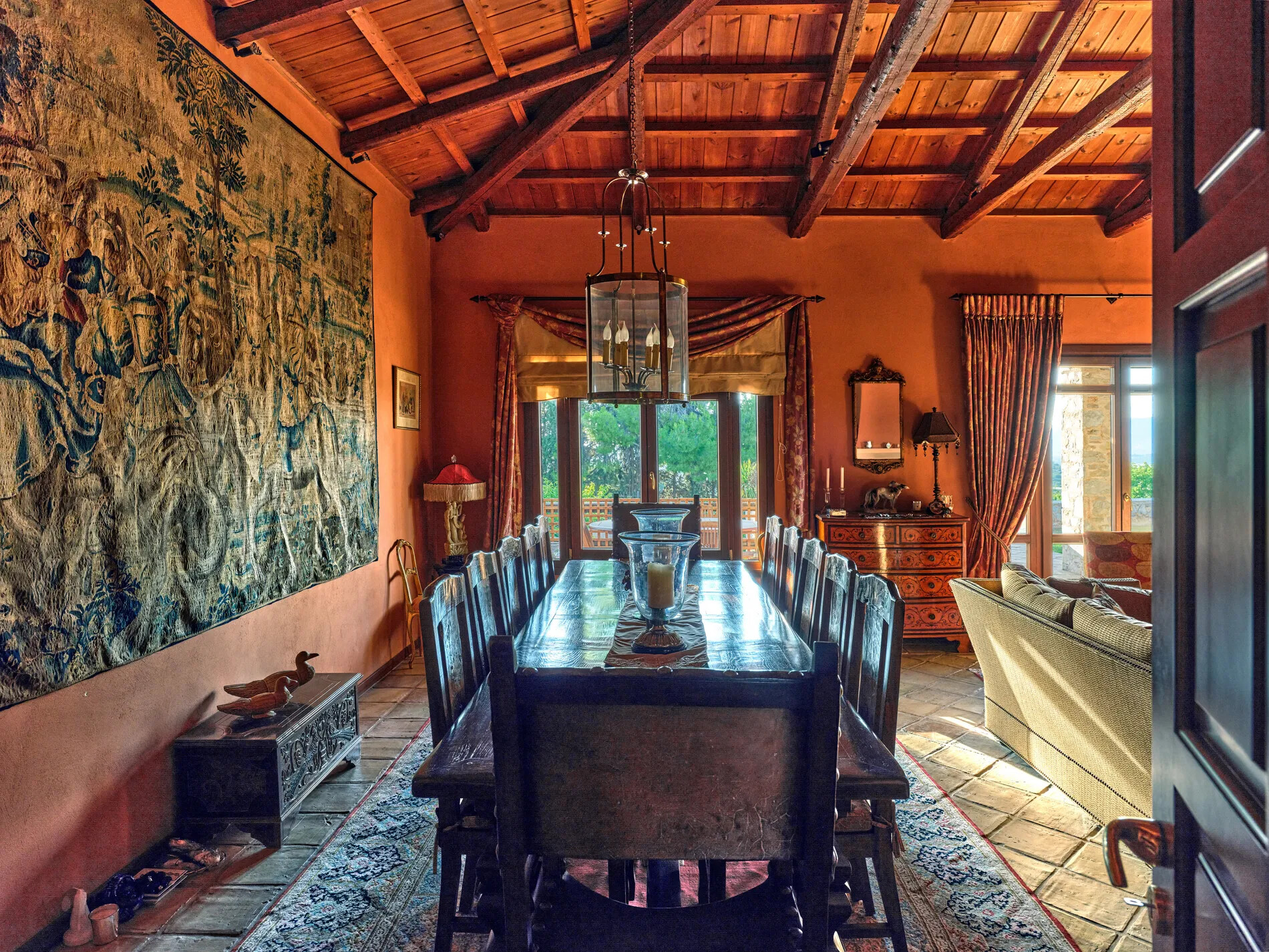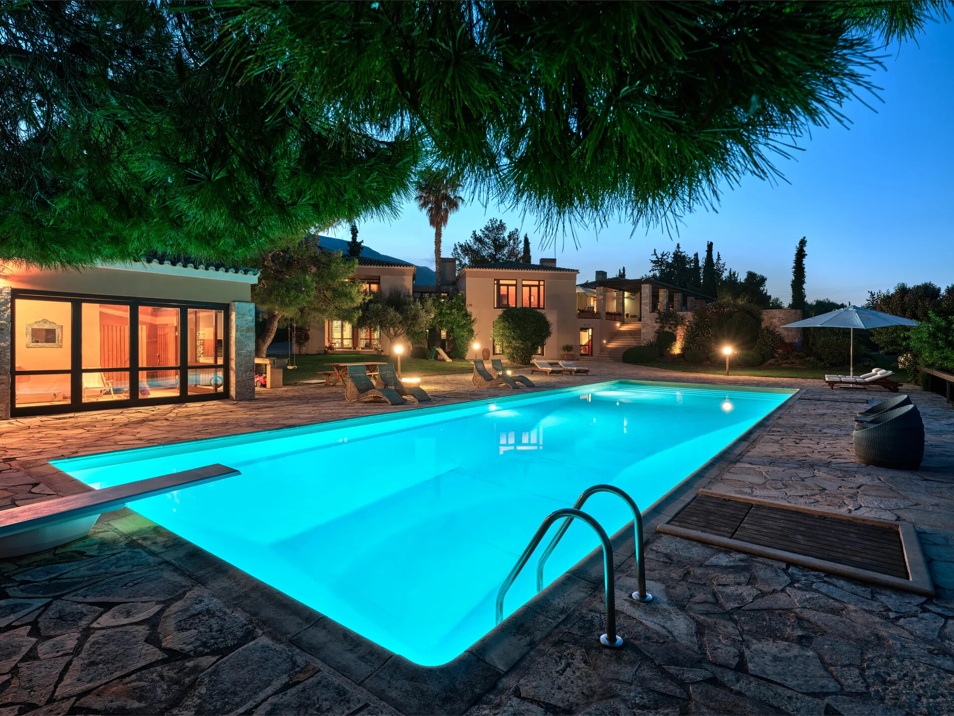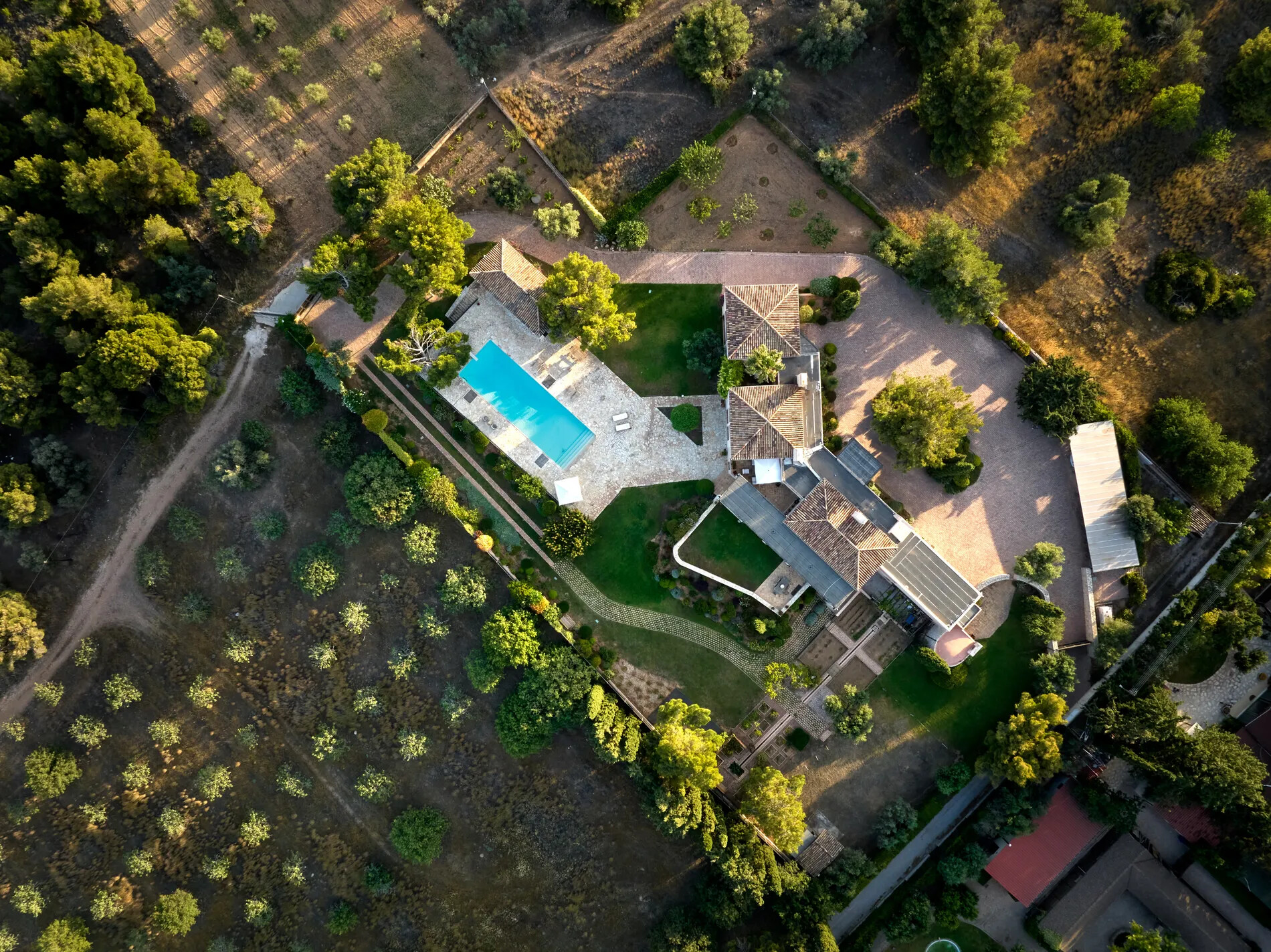 Outdoors, an 18m long swimming pool takes center stage, accompanied by a 104 sqm pool maisonette with a BBQ area. The estate’s tranquility is further enhanced by a small chapel in a beautiful and peaceful spot.