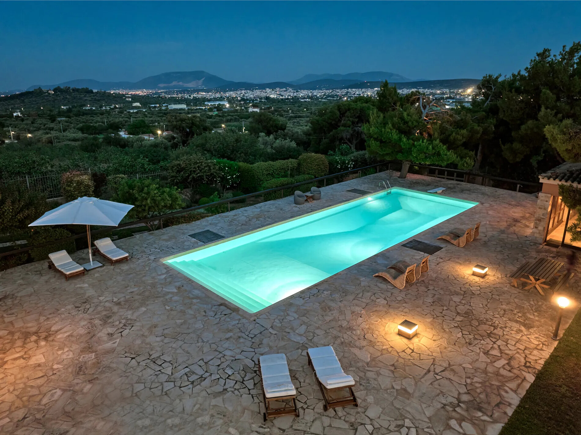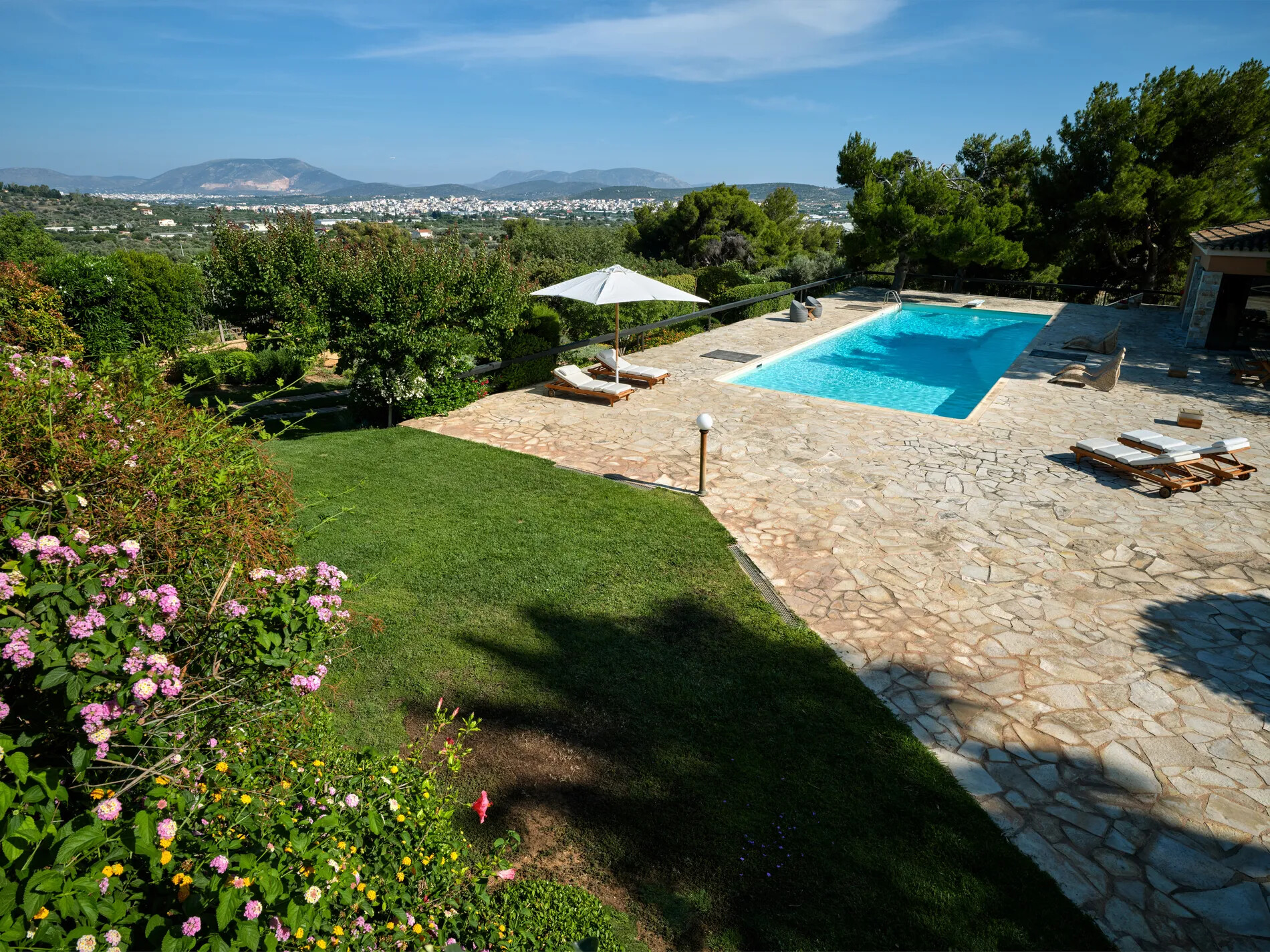 Discover Spectacular villa in Athens, an exquisite villa nestled in the lush outskirts of southeast Athens, offering breathtaking views of both the scenic landscape and the iconic Athens skyline.