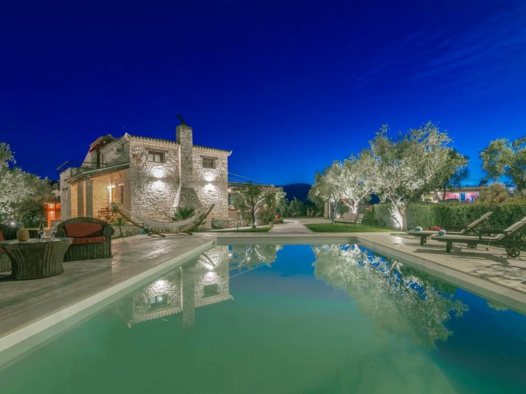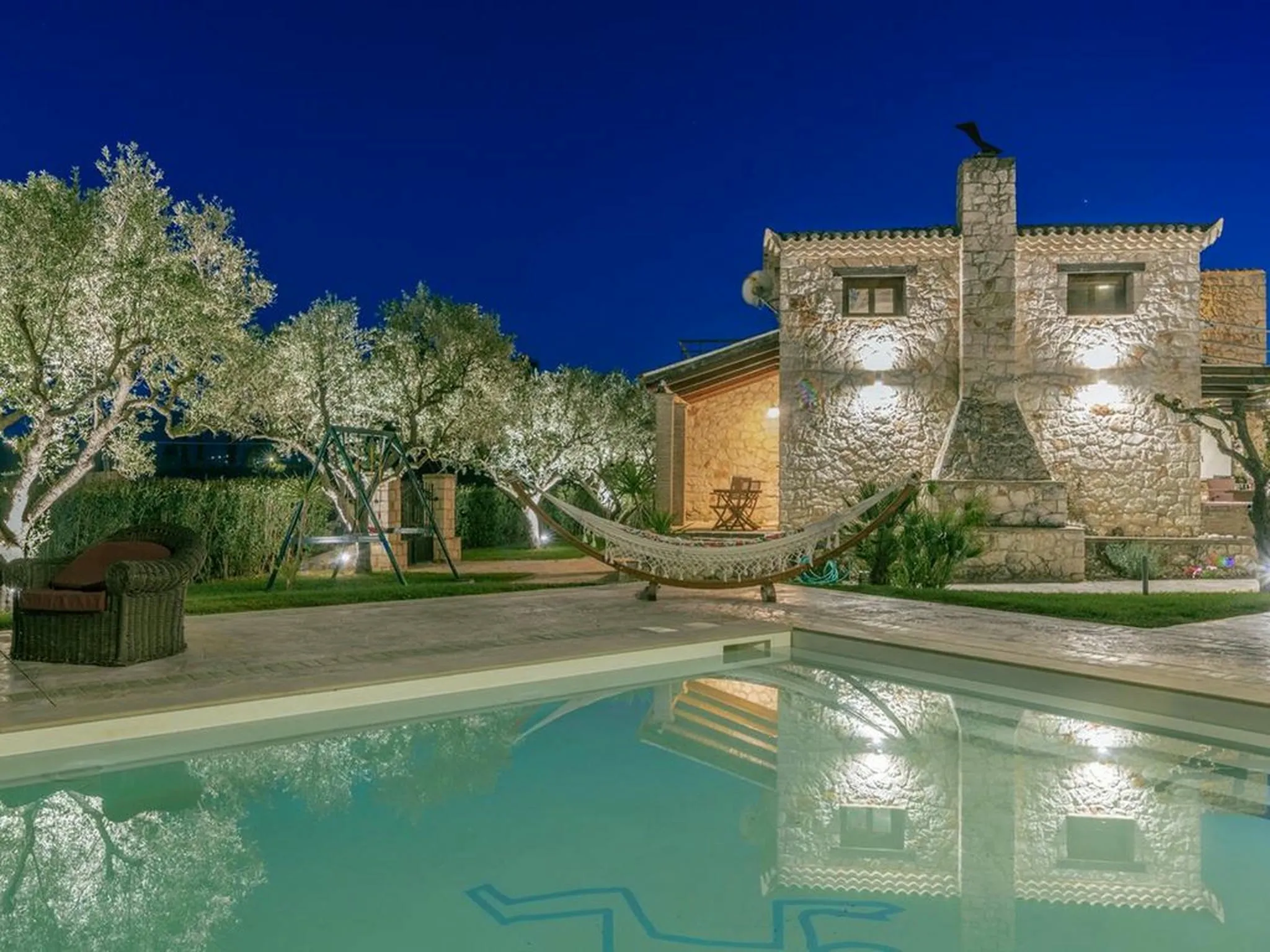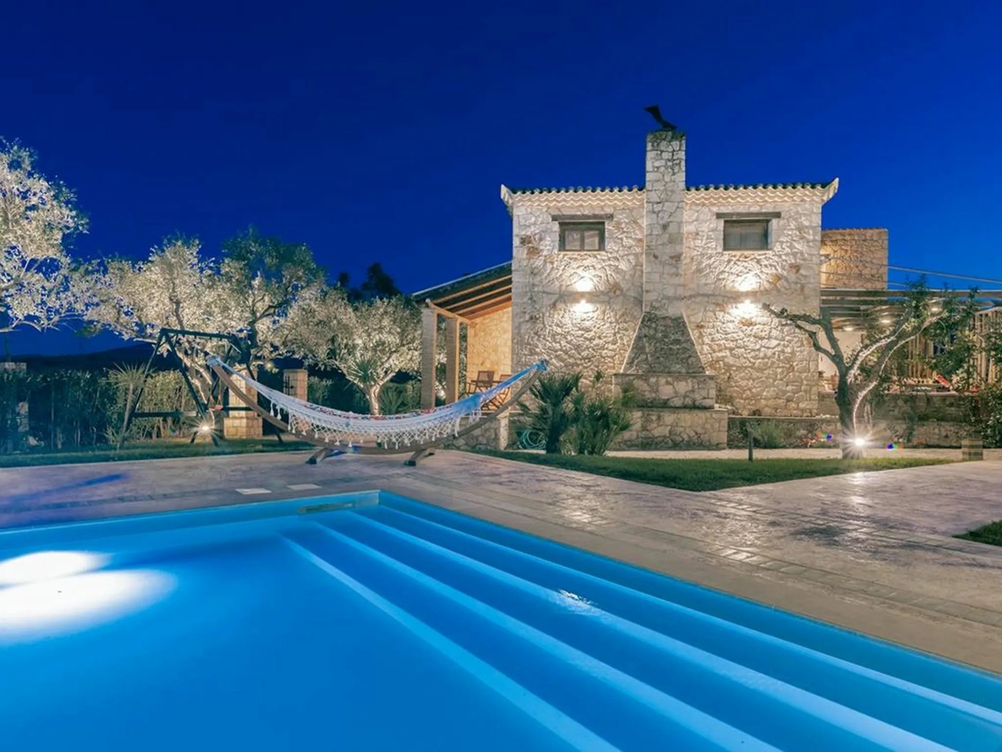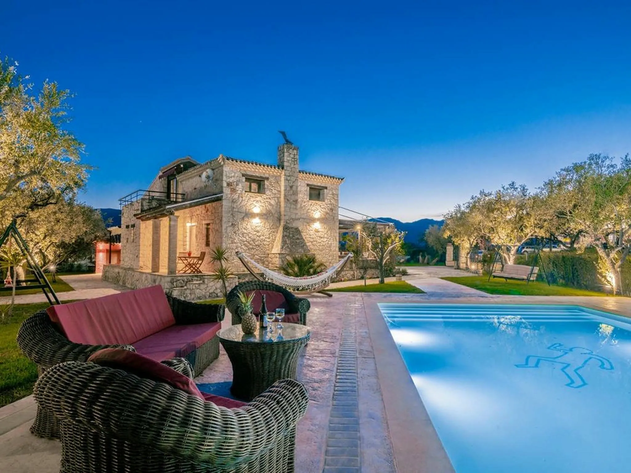 Surrounded by lawns and olive trees in a very central part of the island, this spacious stone pool villa is a true family paradise. Equipped with a treehouse, playground, and a child-friendly pool, it offers everything needed for unforgettable family holidays. Its central location also makes it an ideal base for exploring the entire island.