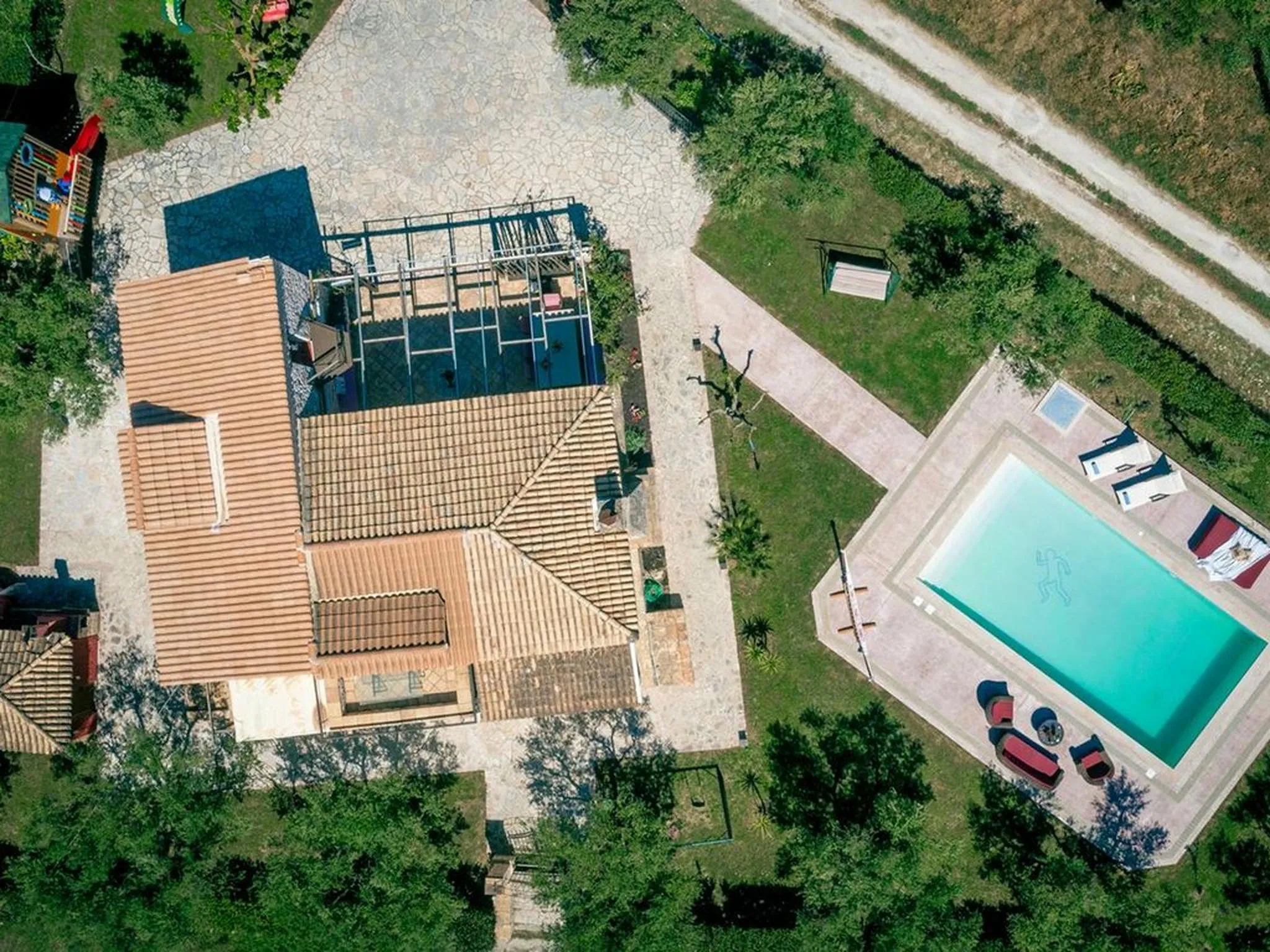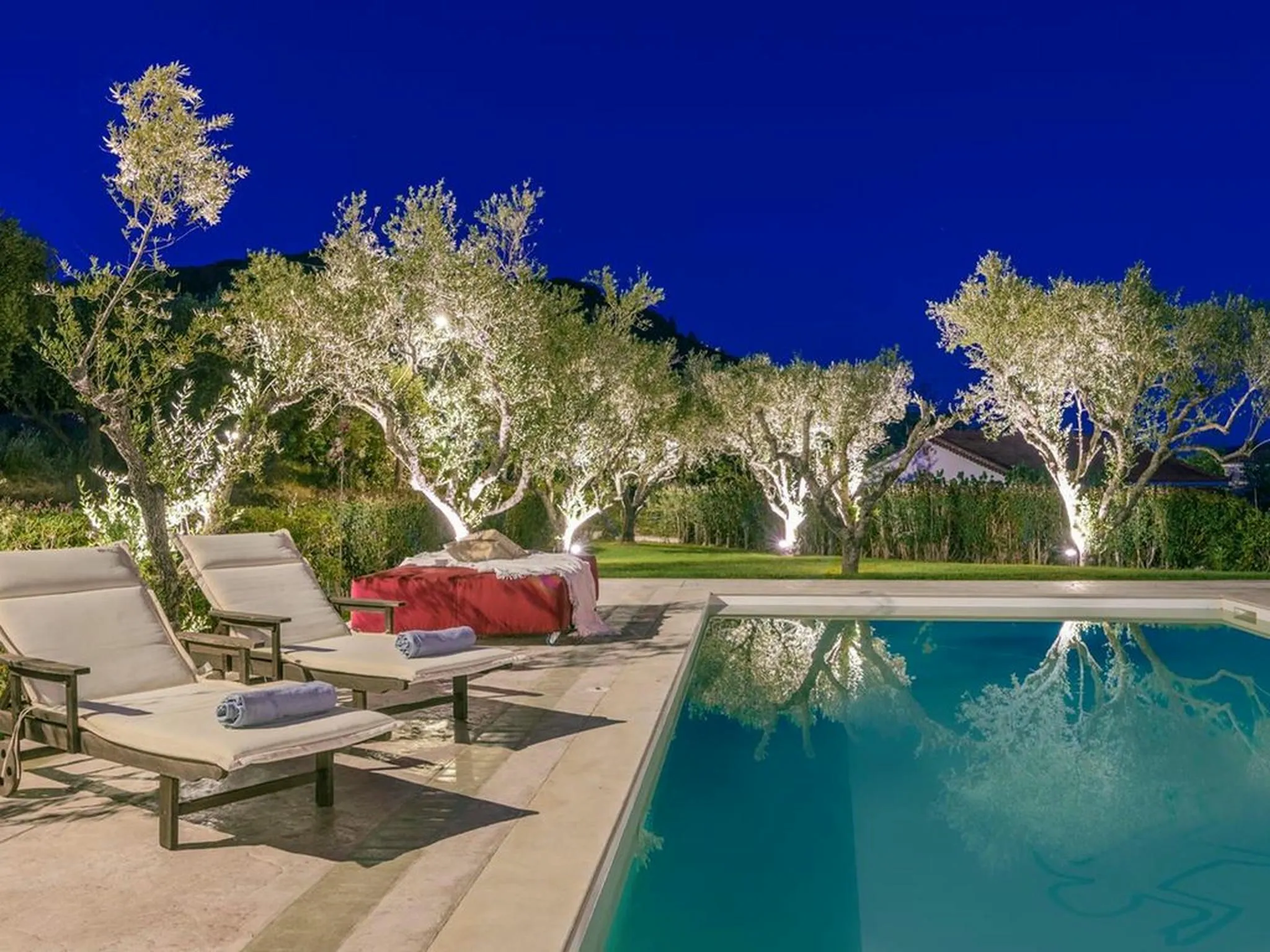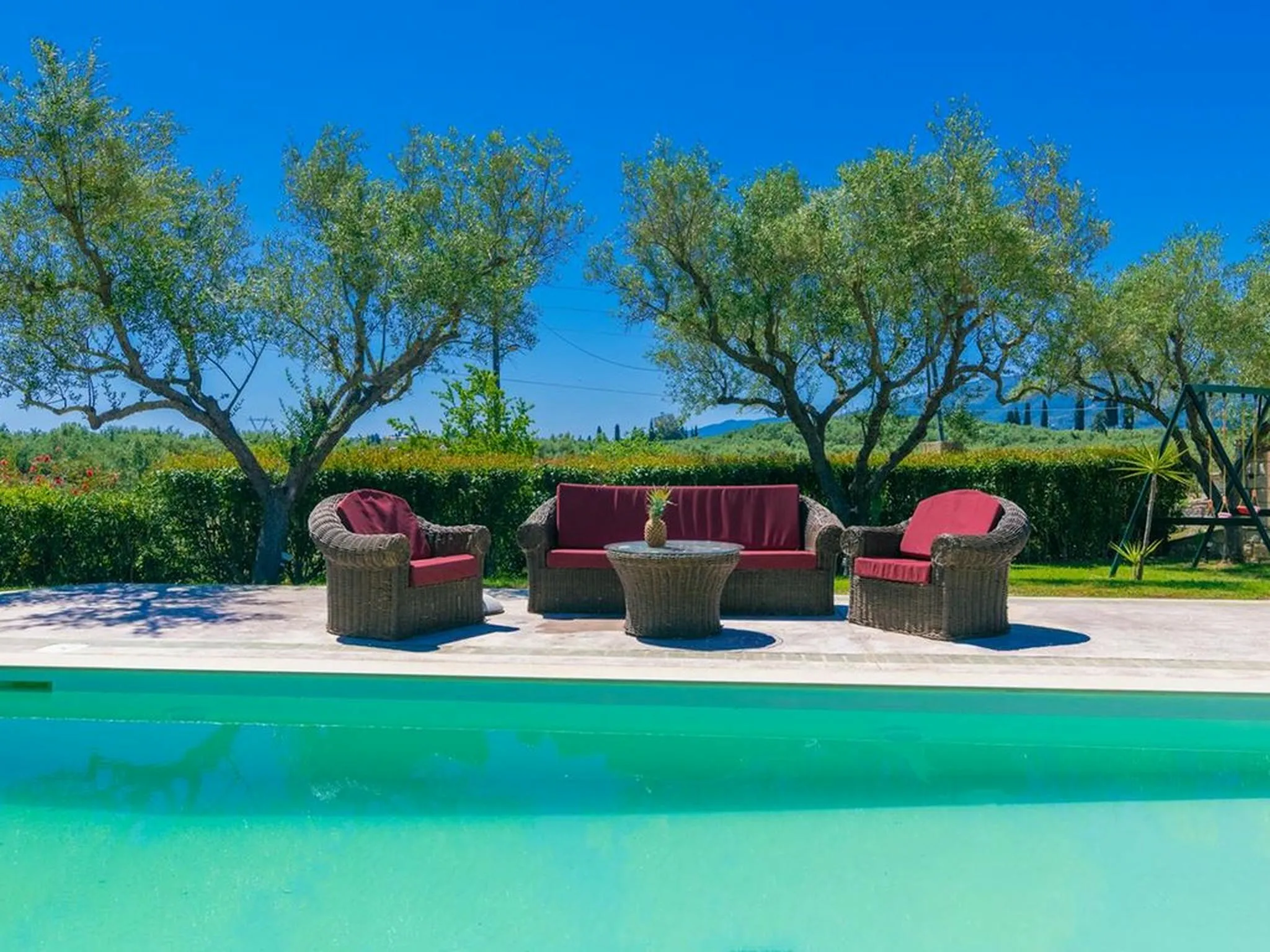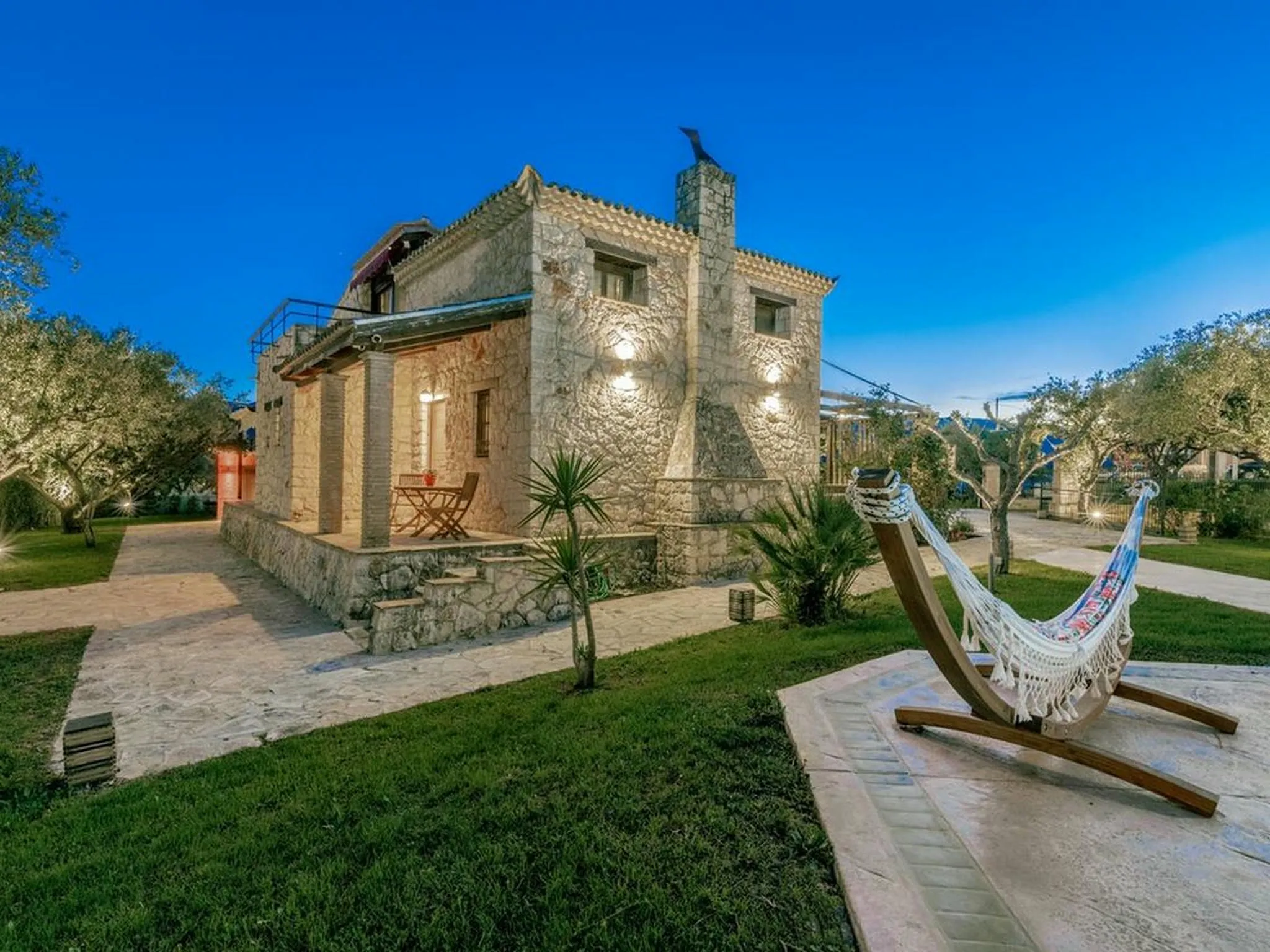 Surrounded by lawns and olive trees in a very central part of the island, this spacious stone pool villa is a true family paradise. Equipped with a treehouse, playground, and a child-friendly pool, it offers everything needed for unforgettable family holidays. Its central location also makes it an ideal base for exploring the entire island.