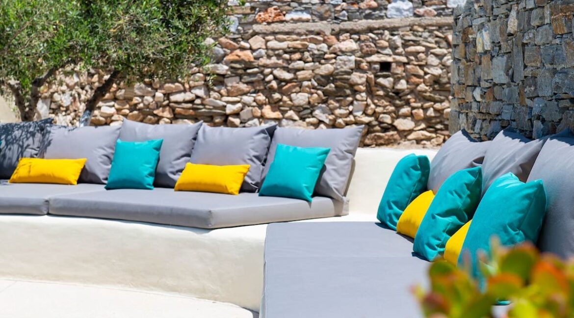 The exquisite surrounding area of 2 acres is full of olive trees and vines as suited to the Cycladic environment. The wonderful gardens of the villa were designed with special care and exhibit a big variety of flowers and plants which are endemic to the region.