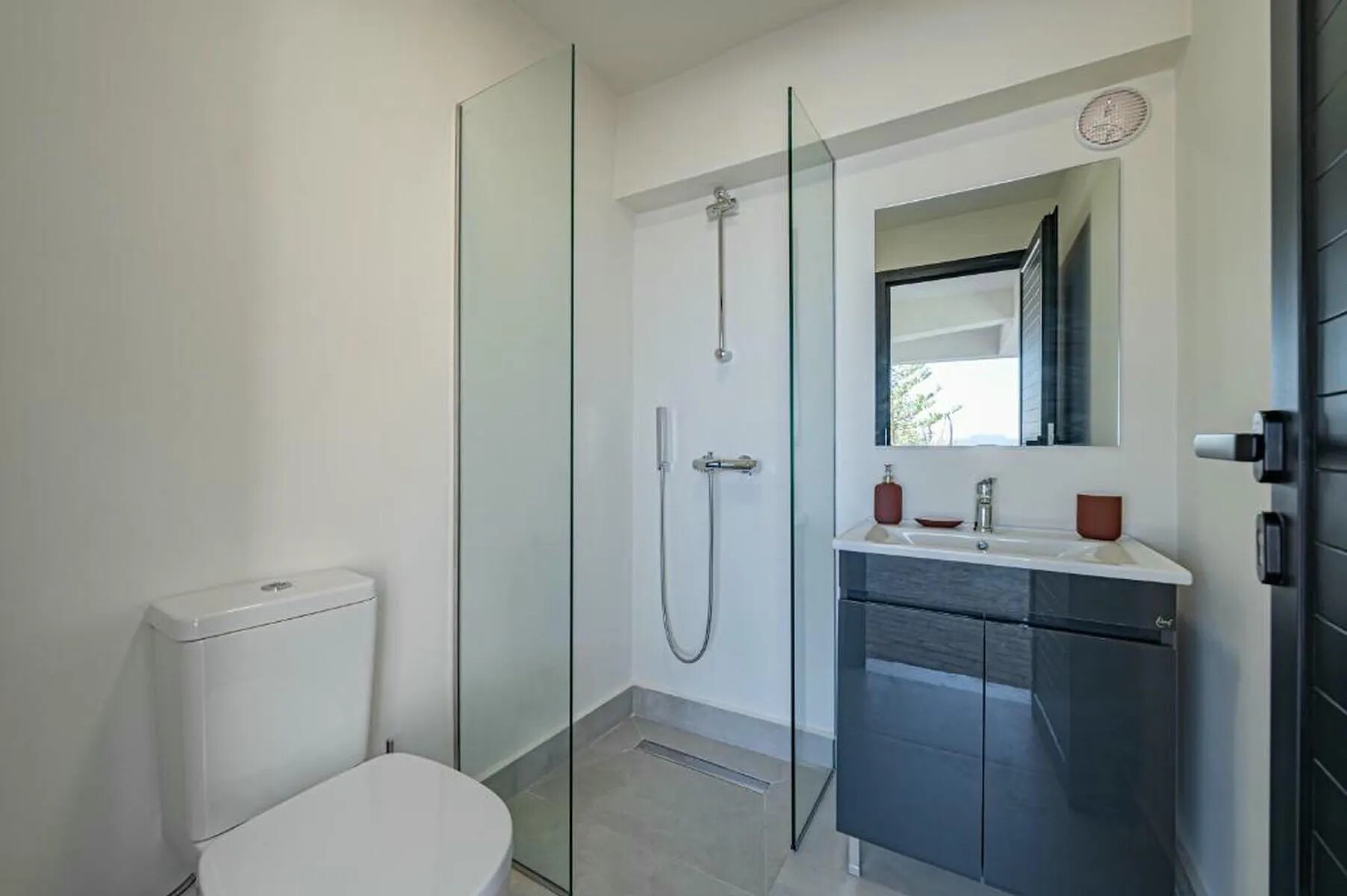 • A modern poolside bathroom