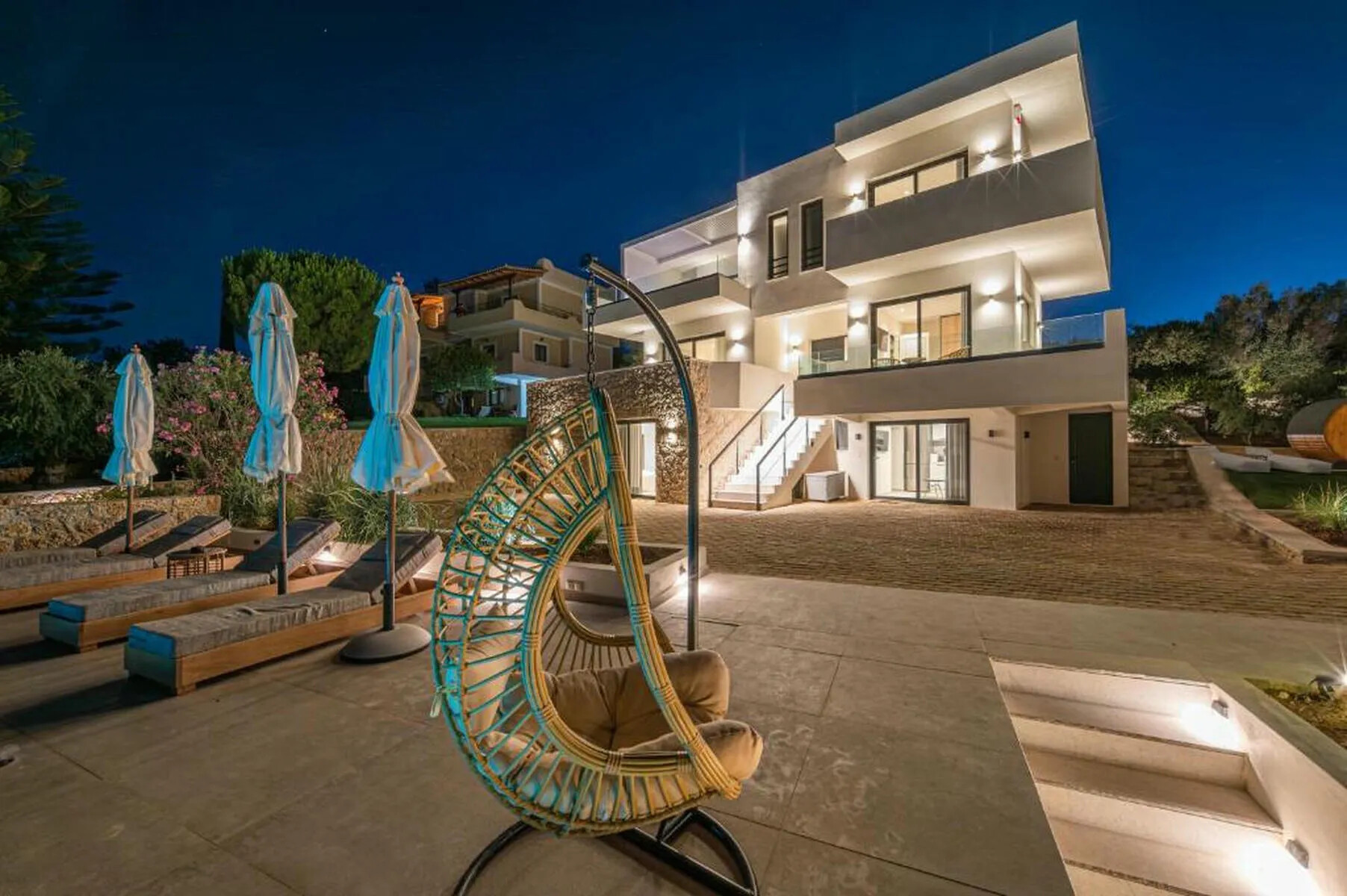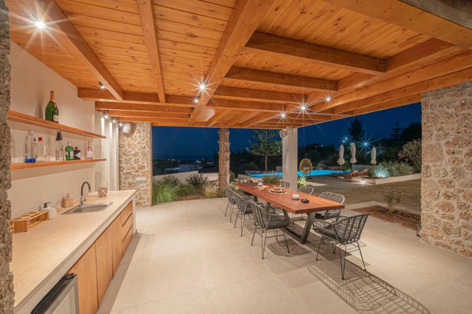 This well-curated outdoor space transforms the villa into a private resort, ideal for gatherings or tranquil moments in nature.