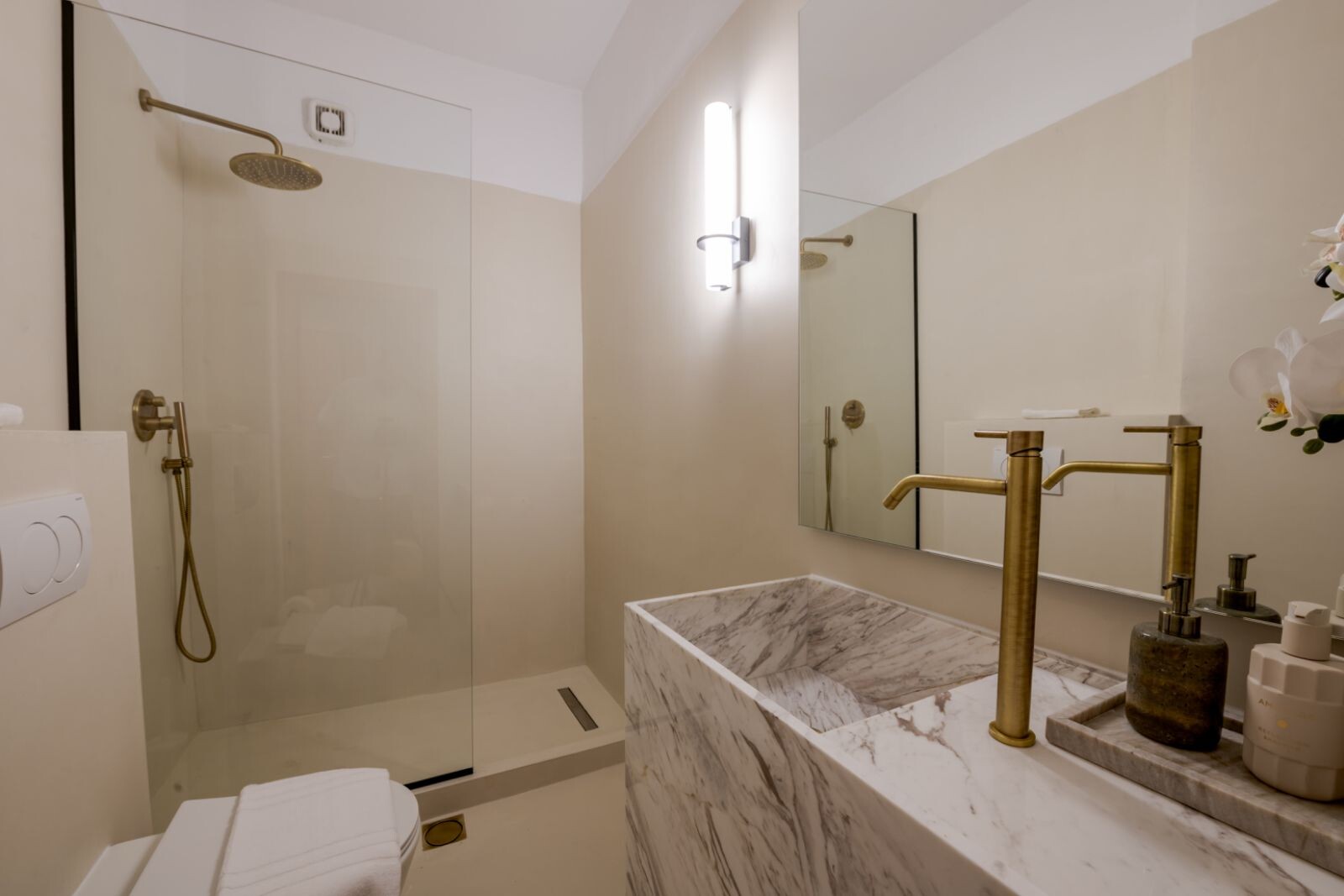 - 2 full bathrooms + 1 half bathroom, all with premium marble finishes and rainfall showers
