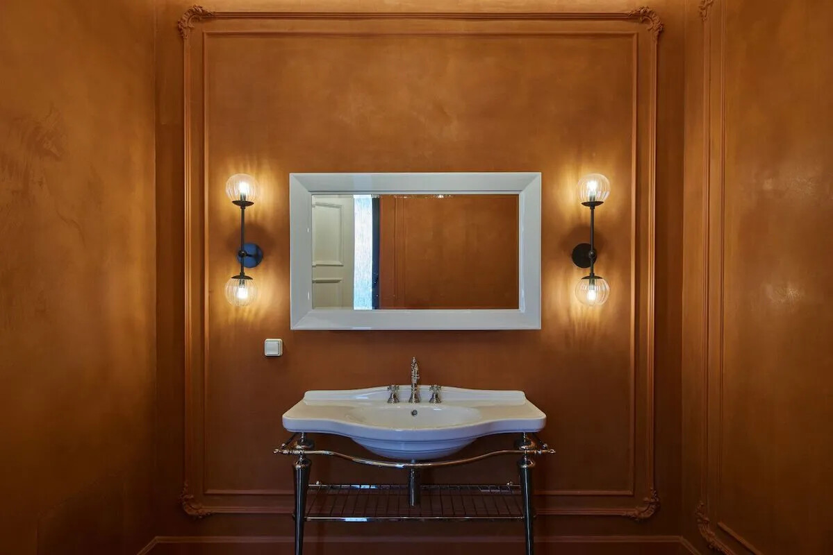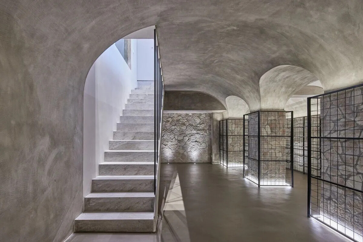 The lower level is designed for ultimate relaxation and recreation, featuring an indoor swimming pool, a spa room, a gym, and a playroom. This level also includes a maid’s room, auxiliary spaces, and access to a stone-built cellar.