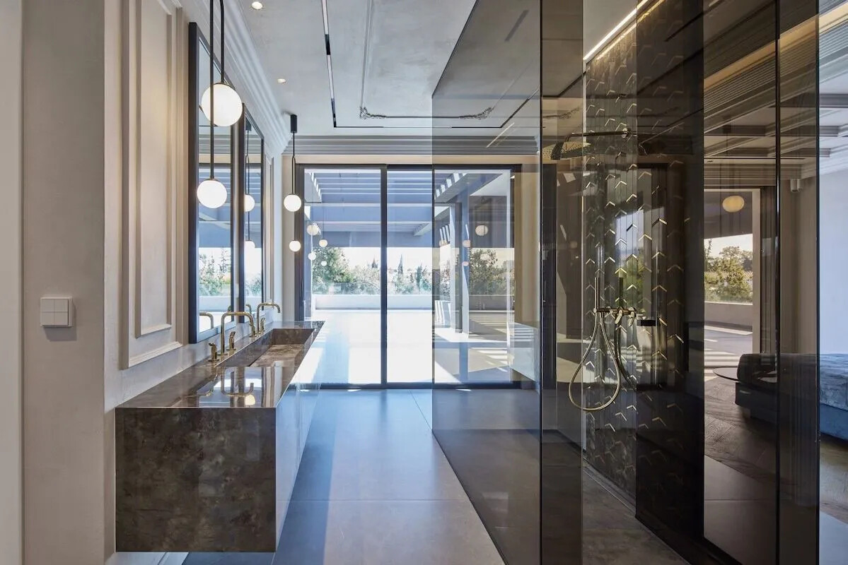 Constructed in 2023 with meticulous attention to detail and the highest standards, this villa seamlessly combines neoclassical elegance with modern design elements, featuring exquisite wooden and marble finishes and sophisticated lighting throughout.