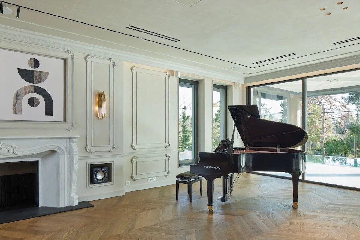 This exceptional property boasts seven master bedrooms, each spacious and airy, with bespoke solid wood floors. Additionally, it features a specially designed indoor pool and a fully equipped private gym.
