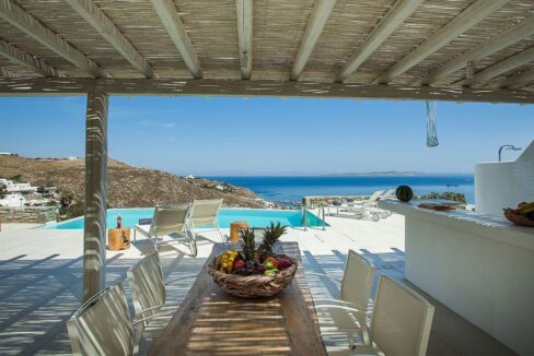 The villa occupies a total area of 150 sqm and from there you can enjoy an amazing view of the Aegean Sea and Mykonos town.