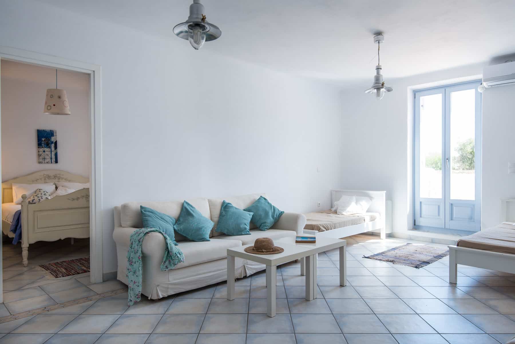 Located in a quiet and beautiful region just 300m. from the beaches Filizi – Santa Maria and Xifara, offering the opportunity to swim under any weather circumstances. You can go to the beach on foot, from a path surrounded by olive trees and vineyards. For unforgettable summer holiday book one of our villas and taste the experience of Paros island!