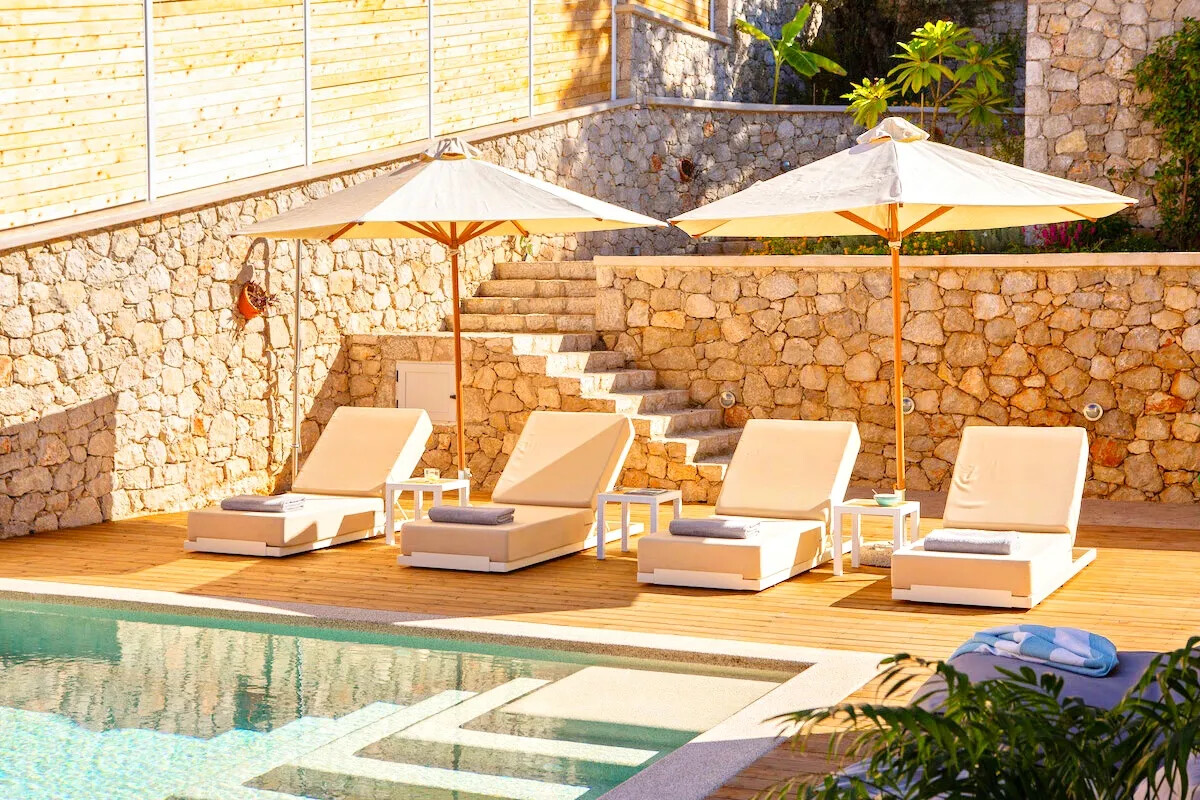 - Swimming Pool: Designed with natural materials and surrounded by a wooden deck